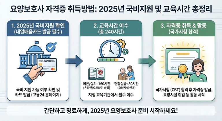 요양보호사 자격증 취득방법💗 2025년 개정판 완벽 정리 320시간 교육 & 국비지원 환급 꿀팁까지 안녕하세요! 여러분의 든든한 멘토 ‘내일의 자격증’입니다. 😊 부모님을 직접 돌보며 월급까지 받을 수 있는 ‘가족요양’ 혜택 때문에 요양보호사 자격증 취득방법을 알아보시는 분들이 정말 많습니다. 실제로 100세 시대에…